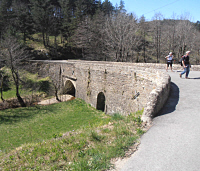 Plus loin la piste redevient route et rejoint le pont sur le ruisseau. Le traverser et suivre la route sur toute sa montée pour rejoindre l'entrée du village puis le parking de départ.