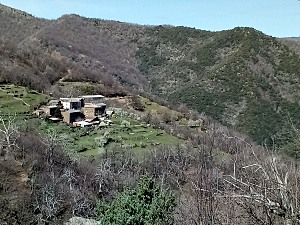 Dans le village monter sur la droite puis sur la gauche (marque jaune), sortir du village par un petit sentier qui passe sur l'autre versant et surplombe le village.